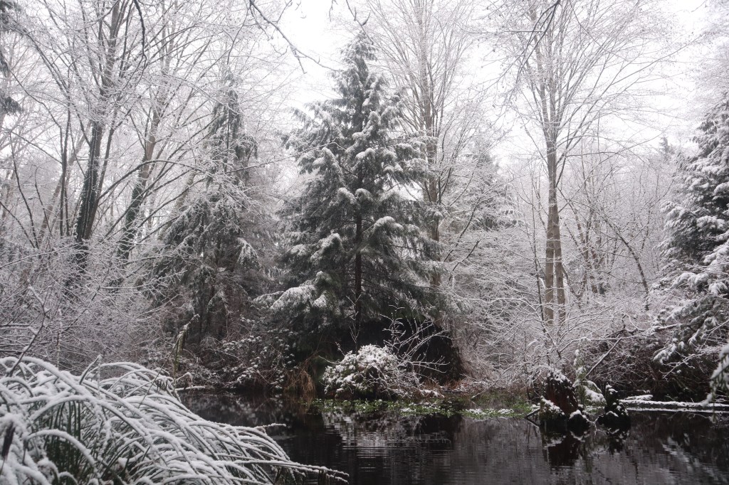 Paramount Open Space is a long narrow park oriented along Little’s Creek which runs south and joins Thornton Creek in Seattle. The southern end of the park includes a wetland that was restored in the 1990s. A number of short trails meander through the park and most radiate out from a small grassy opening adjacent to the public parking lot at the end of 147th street to the three street entrances.