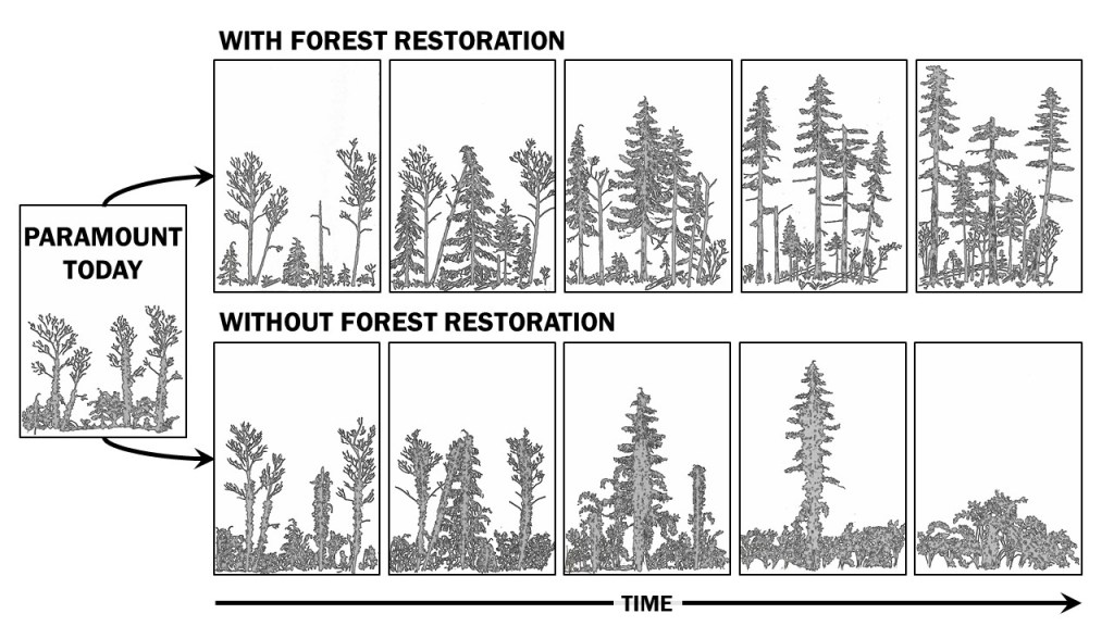 Ecological restoration is important because invasive species will slowly take over our forests dramatically changing their character, reducing habitat for wildlife, and diminishing biological diversity. In short, the soaring evergreen forests so iconic to the Pacific Northwest will slowly convert to shrub and become vine-dominated like the slopes along Intertstate 5.